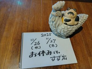 ---お知らせーーー11/26(水)と11/27(木)お休みです。辺境の地でお店をやっておりますので、せっかくたどり着いたのに、「休みかい!」ってなると腹が立ちますので(#^.^#)お気を付けください。m(__)m